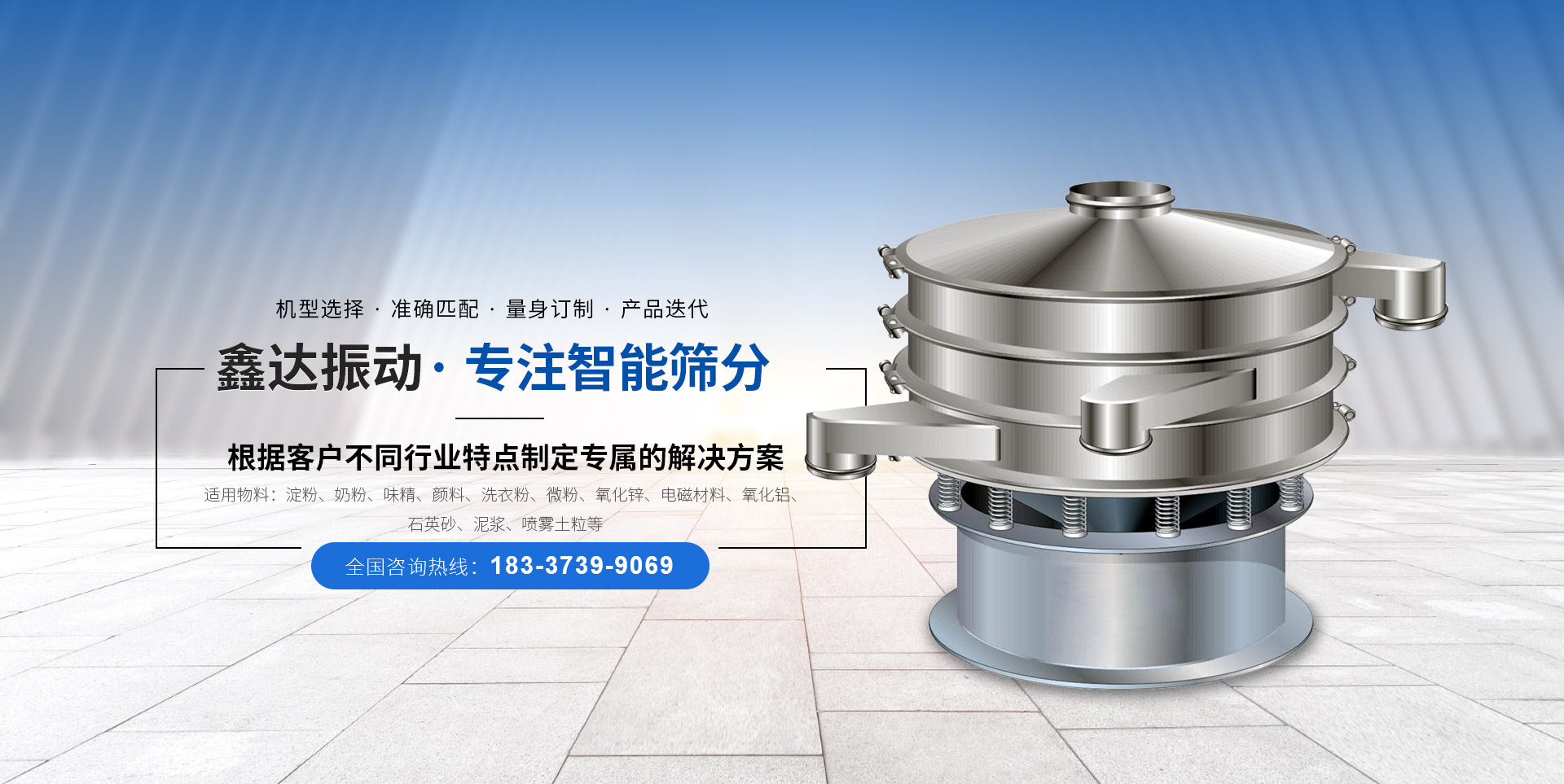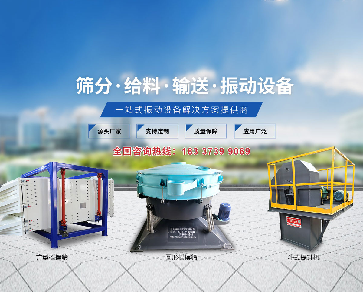 新鄉市鑫達振動設備有限公司是研制、生產、銷售篩分設備、振動設備、提升設備的廠家,以研制生產振動電機,篩分設備而著稱于國內外市場。我公司與中國礦業大學北京理工大學、機電部設計院等高校和科研設計單位緊密配合,依托企業雄厚的經濟基礎完整的技術資料、精良的加工設備以及一批高素質的技術職業隊伍,導入ISO9001:2000國際質量管理體系,以科學管理模式、優良售后服務、不斷完善產品質量。  公司主要產品有:振動篩、超聲波振動篩、直線振動篩、礦用重型篩、旋振篩、脫水篩、直排篩、系列振動電機、振動給料機、給料斗、振動振動防閉篩、振動磨機、斗式提升機、垂直(螺旋)提升機、皮帶輸送機等?! 」疽回瀳猿?“價格合理、服務完善”的宗旨,憑借著高質量高水平的產品,良好的信譽、完善的服務、竭誠與您雙贏合作、共同發展、共創輝煌!